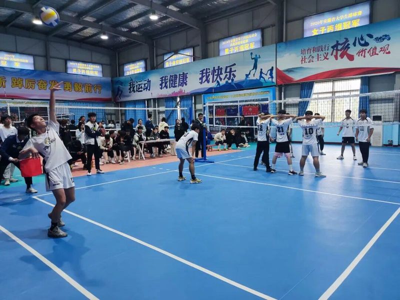 电子工程学院和化材学院于决赛相遇。比赛开始前,双方队员进行热身训练,商讨战术,积极准备接下来的比赛。比赛开始后,双方球员斗志昂扬,热血澎湃,团结合作,相互鼓励,给对方球员极大的压力。经过几场比赛后,我院球员一路过关斩将,进入决赛。最后我院男生队获得本次汤泉杯气排球比赛男子组第二名,女生队获得女子组第五名的好成绩。