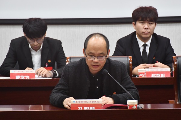 孔鲲鹏代表院党委向刚刚选举产生的新一届学生会主席团、委员表示热烈祝贺!向大会筹备工作委员会和全体代表的辛苦付出表示衷心感谢!他指出,在梦想的新征程即将出征之际,青年大学生应做到以下四点:一、以理想照亮前行的路,做“眼中有光”的新时代好青年;二、以吃苦练就过硬本领,做“手上有招”的新时代好青年;三、以担当彰显初心使命,做“肩上有责”的新时代好青年;四、以奋斗书写青春答卷,做“脚下有路”的新时代好青年。