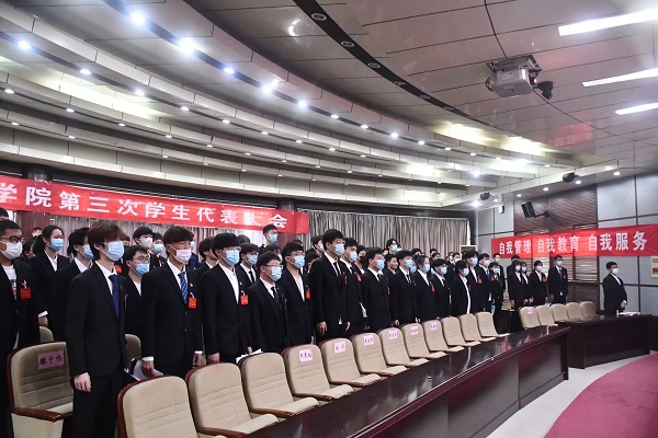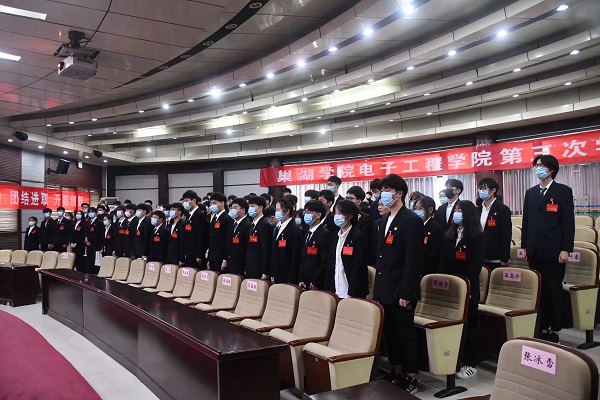 最后,全体成员起立奏唱《光荣啊,中国共青团》,至此,电子工程学院第三次学生代表大会落下帷幕。