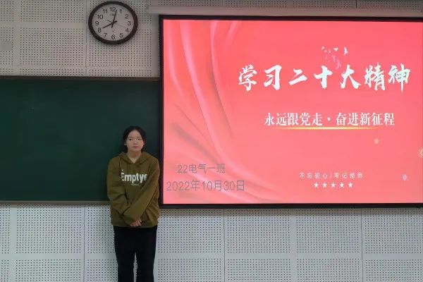 为深入学习宣传贯彻党的二十大精神,强化广大共青团员的政治品格,赓续红色血脉,夯实精神之本,熔铸精神之源,各班级开展“党的二十大精神”主题团课,由各班级团支书主持,班级全体成员参与。
