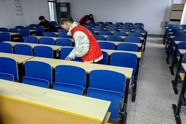 活动伊始,武夏炎组织志愿者们在博学楼门口集合,清点人数后分发志愿者服装。紧接着,武夏炎说明了相关注意事项,并对志愿者们进行分组,并每组选出组长进行带队,由每组组长分配任务。随后,志愿者们认真清理教室内的垃圾、打扫教室卫生、整理教室内的教学物品。最后,由武夏炎收回并清点打扫工具和志愿者服装并进行拍照合影留念。至此,此次活动结束。