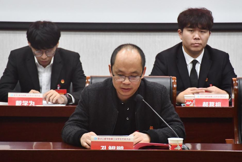 图8 学院党委副书记孔鲲鹏在电子工程学院第三次学生代表大会闭幕式上的讲话