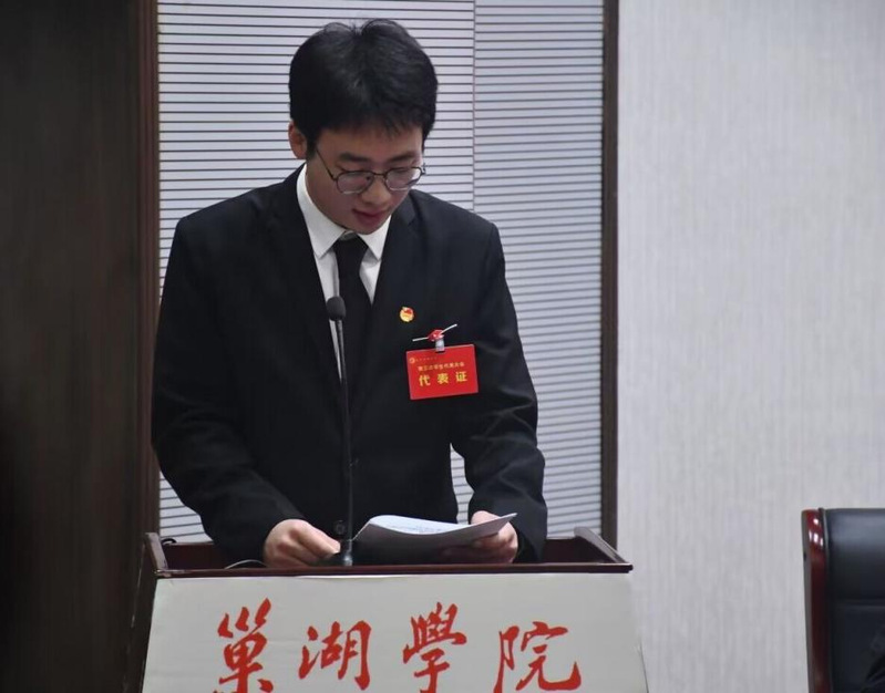 图4 陆金圣同学代表电子工程学院第二届学生委员会做工作报告