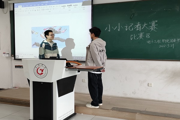 为丰富大学生的校园生活,展现同学们富有活力的青春风采。电子工程学院于3月29日中午十二点半在慎思楼北202、203教室举办小小记者大赛。本次比赛由电子工程学院学生会宣传部朱咸俊、程梓纹、江建权、顾文辉主持,部分参赛人员和工作人员参与。