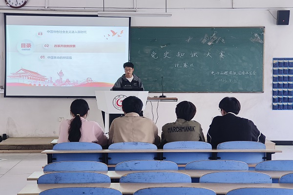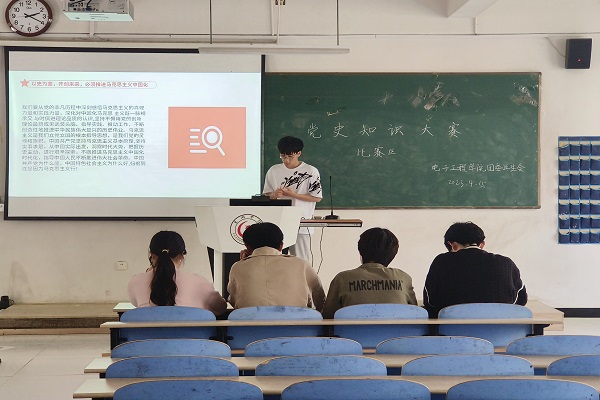 为学习贯彻党的二十大精神,争做新时代党的事业的接班人,电子工程学院学生会于4月15日中午在慎思楼中202,204举办“重温光辉历程,传承红色基因,践行报国之志”党史知识竞赛,本次活动由电子工程学院学生会综合事务部承办,电子工程学院部分同学参加。