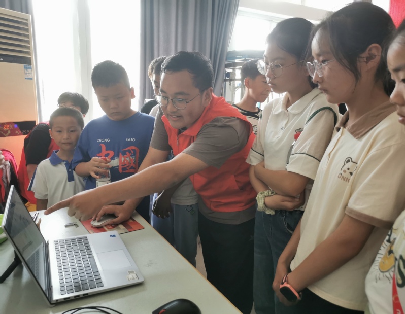 党员志愿者王高珍为青少年们讲授一堂以“凝聚科技力量实现伟大中国梦”为主题的理论课。让青少年从红色历史、当下现状、未来展望等方面了解国家科技的发展趋势,在课程中了解科技文化知识的力量,引领青少年努力学习科学文化知识。