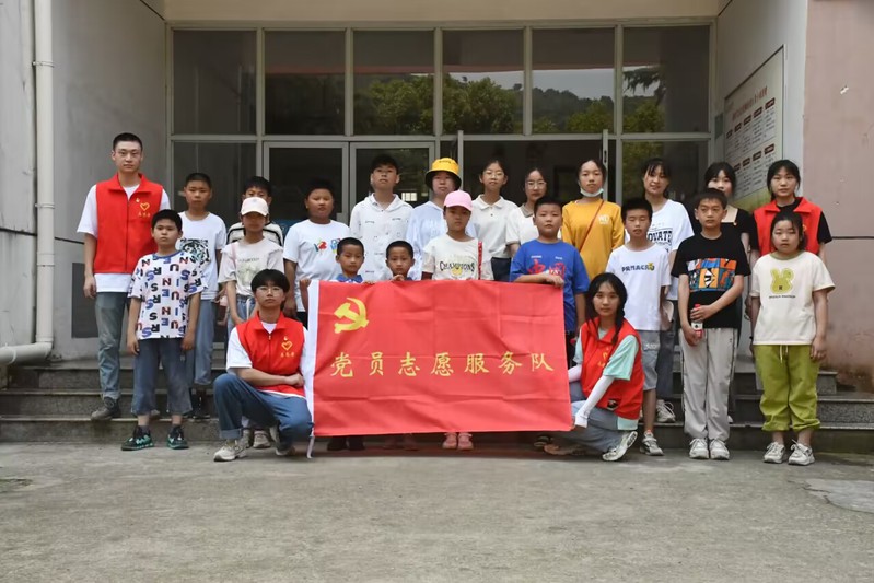 在志愿者的带领下,青少年们前往学校图书馆,开展研学第一站,在志愿者的讲解下,了解图书馆的历史、藏书数量、借阅使用等内容,培养孩子们对阅读的兴趣。研学第二站,志愿者带领青少年参观学校红色地标,介绍相关历史。引领青少年树立正确的世界观、人生观、价值观,传承红色基因,充分发挥红色文化的育人功能。