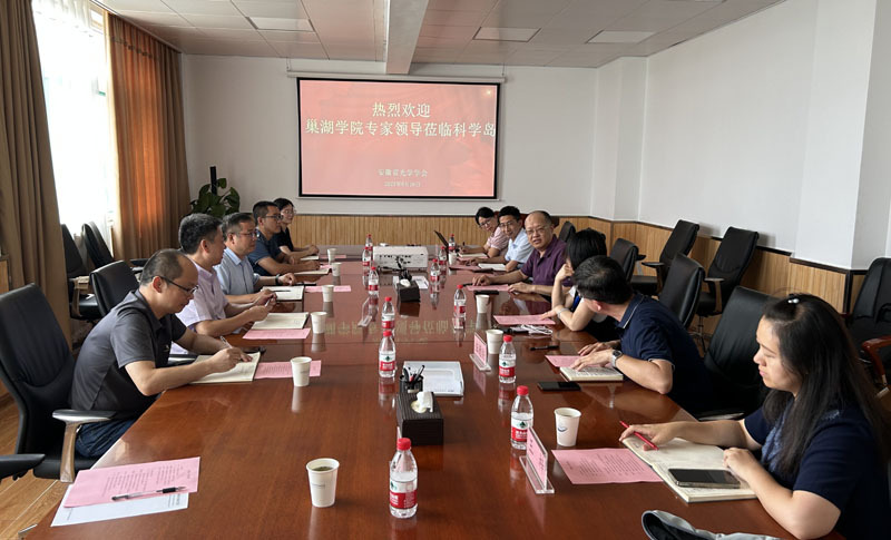 中国科学技术大学光电子省重点实验室副主任、安徽省光学学会副理事长王沛对必赢626net入口加入安徽省光学学会表示祝贺,并介绍了光电子省重点实验室基本情况。中国科学院安徽光学精密机械研究所党委书记、安徽省光学学会常务理事/秘书长谢品华对必赢626net入口一行来访表示热烈欢迎,并介绍了光学学会的历史和活动开展情况。周祥详细介绍了学校的基本情况,并就人才培养、学科平台建设、学术会议合作开展等方面同与会人员进行了探讨交流。