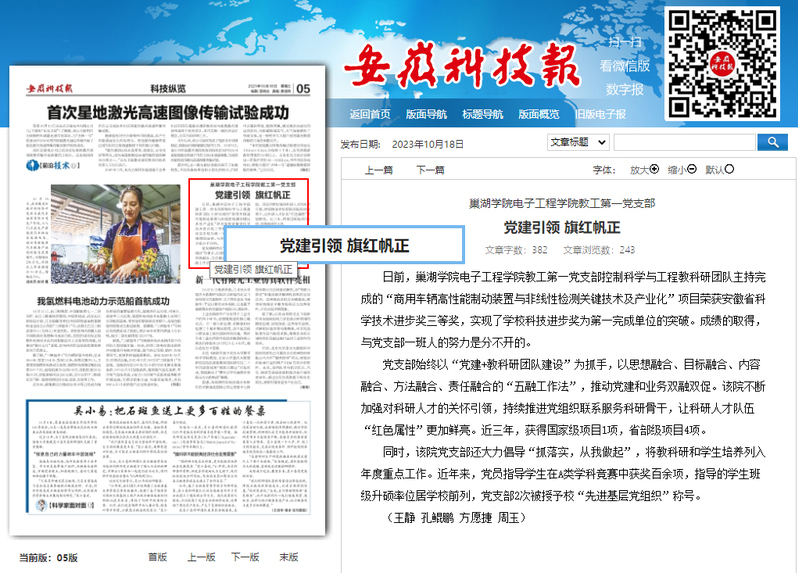 【安徽科技报】必赢626net入口电子工程学院教工第一党支部 党建引领 旗红帆正