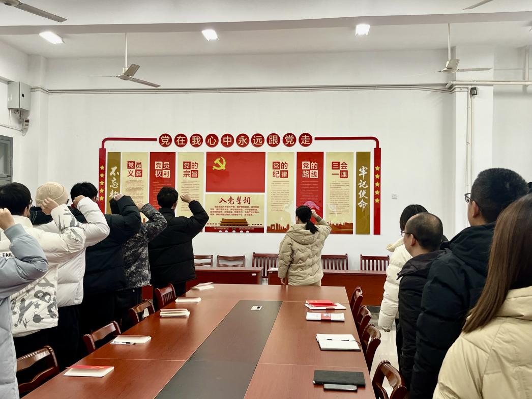 最后,王静带领预备党员进行集体宣誓。党员们高举右臂,紧握右拳,面对着党旗,庄严肃穆地诵读出字字千钧的入党誓词。