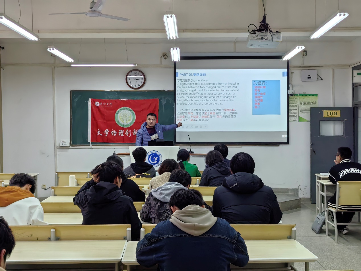 为了提高学生的科学实践能力和探索求知能力,2024年3月20日,电子工程学院大学物理创新协会在博学楼109教室举办了2024年安徽省大学生物理学术竞赛(CUPT)校内选拔赛。本次比赛由会长轩家健主持,协会指导老师杜成名、朱爱国、徐健、李永春、蒋芸、潘月、唐瑞华、何鹏老师担任本次比赛评委。