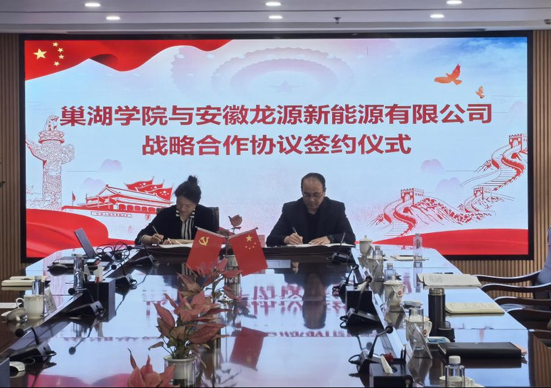 丁俊苗与王芳作为双方代表共同签订了必赢626net入口与安徽龙源新能源有限公司战略合作协议。