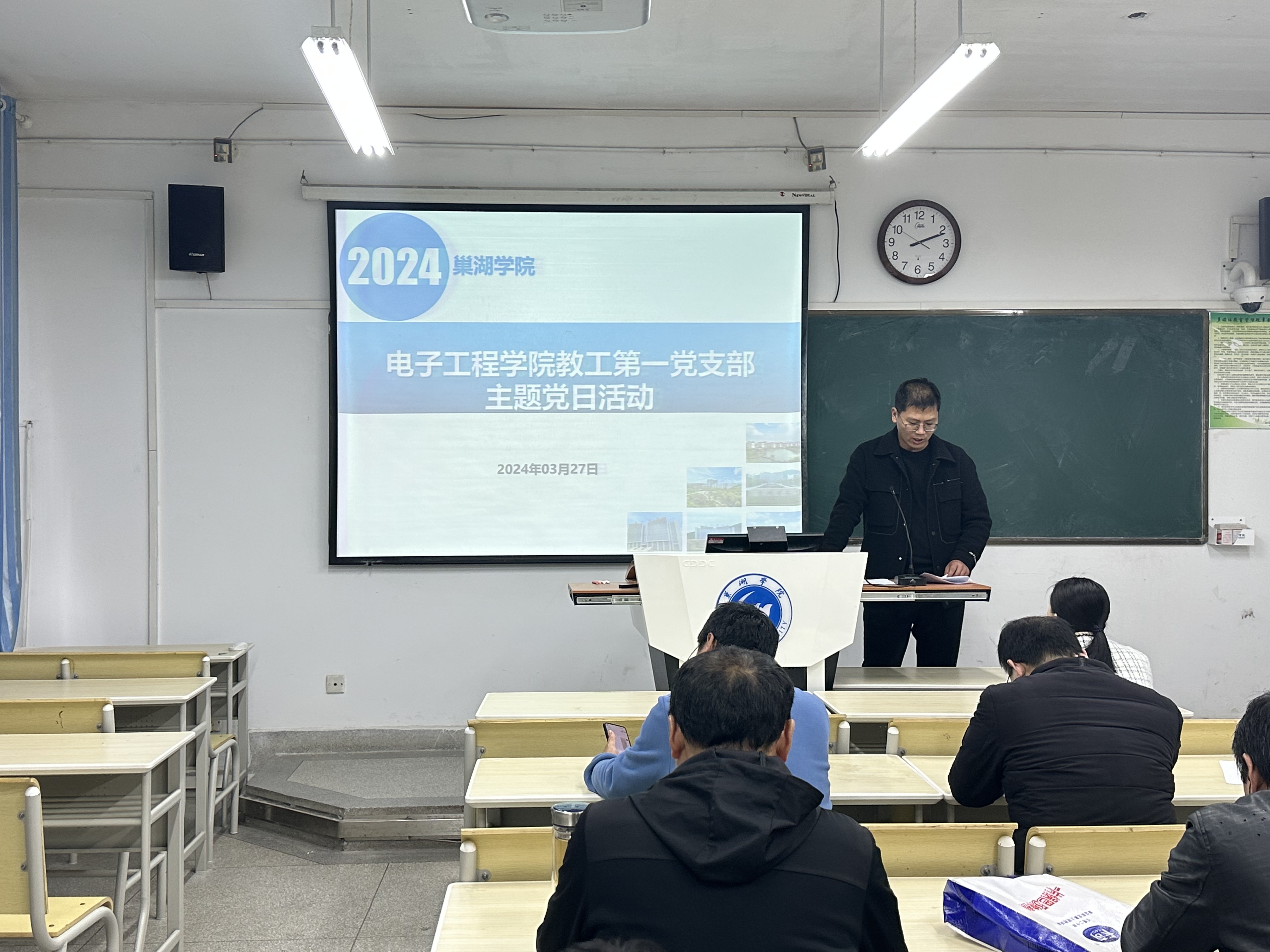 3月28日下午,电子工程学院教工第一党支部在博学楼113教室开展主题党日活动,学院党委委员、副院长方愿捷作为普通党员参加本次活动,活动由党支部书记王静主持,支部全体党员参会。
