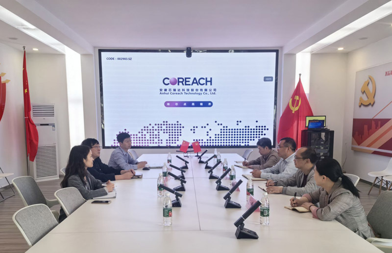 在安徽芯瑞达科技股份有限公司,公司生产中心总经理陈建新详细介绍了公司的发展历程、产品研发及未来发展方向,希望下一步在实习就业、人才培养、产学研等方面深化合作。