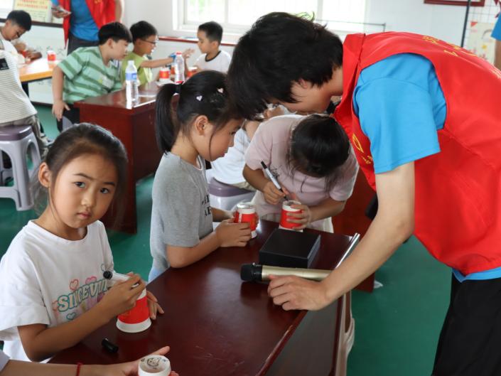 科学素养是衡量一个国家公民素质的重要指标,对于发展新质生产力具有不可替代的关键作用。新质生产力的核心在于创新,趣味科普课堂能够激发青少年的创新思维,点亮科技创新梦。实践团来到了郎溪县十字镇儿童服务站,为20余名儿童上了一堂生动富有趣味的科普课程。主讲人刘豪以其生动有趣的讲解方式,带领小朋友们走进了一个充满奇妙与惊喜的科学世界。他逐一介绍了“无影空气炮”、“纸杯投影”以及“平均分水”这三个既有趣又蕴含科学原理的实验,并鼓励小朋友们亲自动手尝试,体验科学的魅力。