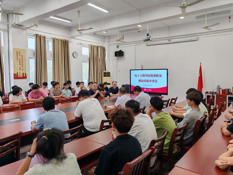 2024年9月3日下午,电子工程学院在致知楼会议室举办优秀校友就业经验分享会。本次分享会邀请了2011届电气工程及其自动化专业校友、合肥阳光电动力科技有限公司总监郭涛主讲,分享会由学院副院长方愿捷主持,部分教师代表和学生代表与会。