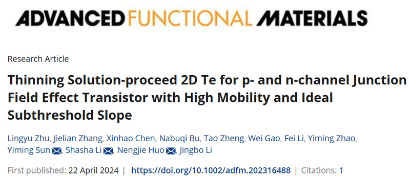 李莎莎博士(通讯作者之一)与华南师范大学孙一鸣研究员课题组合作设计了基于范德华异质结结型晶体管,相关工作发表在《Advanced Functional Materials》(中科院一区TOP,IF=18.5)期刊。基于范德华异质结结型晶体管可实现整流二极管、p沟道和n沟道晶体管在同一器件中多功能集成,通过高效双栅调制,可以获得高迁移率、近理想的亚阈值摆幅和高开关比性能。