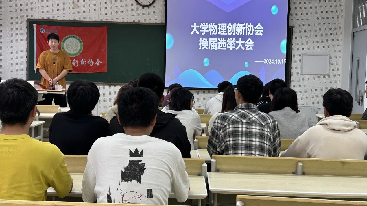 根据校团委和电子工程学院党委的部署,2024年10月15日中午,大学物理创新协会在崇学楼中303教室举办了社团换届大会。协会各部门干事以及会员近50人参会,协会指导老师杜成名到会指导,会议由许家乐主持。