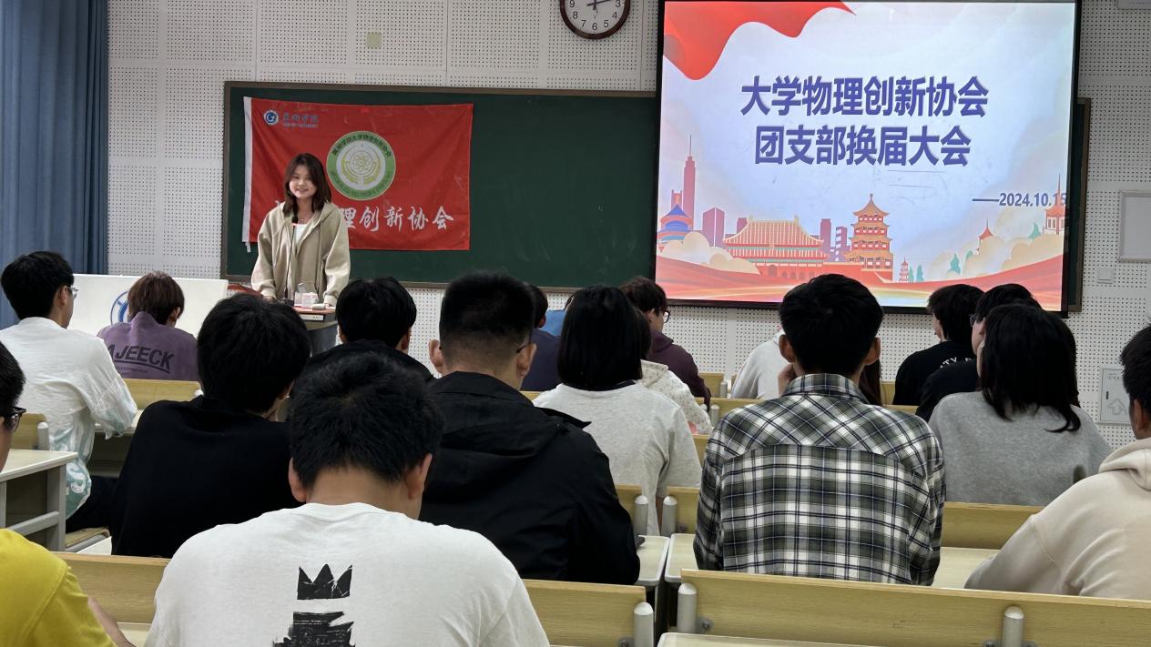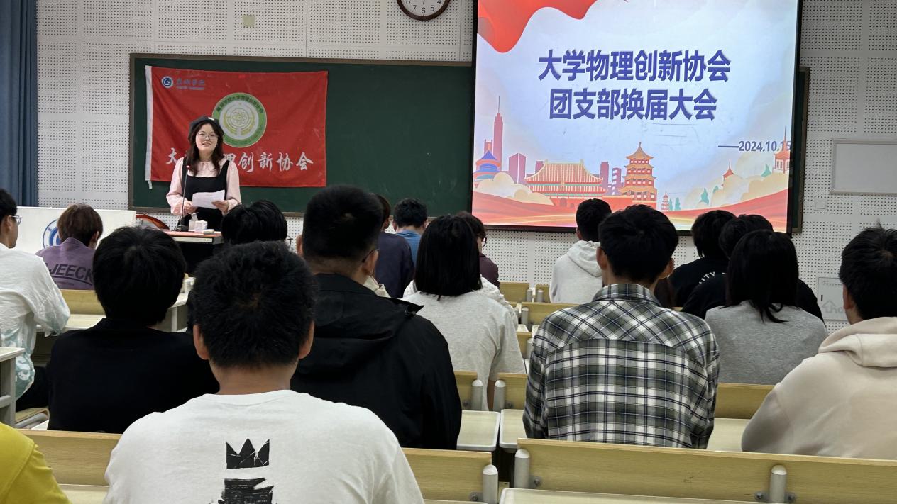2024年10月15日中午,大学物理创新协会于崇学楼中303教室举行团支部换届大会,协会指导老师杜成名、协会全体团员参加。