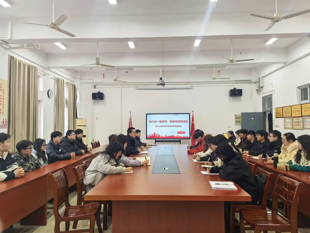 为进一步加强学风建设,营造良好的学习氛围,2025年2月19日下午,电子工程学院组织召开了学风建设专题座谈会。学院党委副书记刘雪刚、全体专职辅导员及各年级学生代表与会。