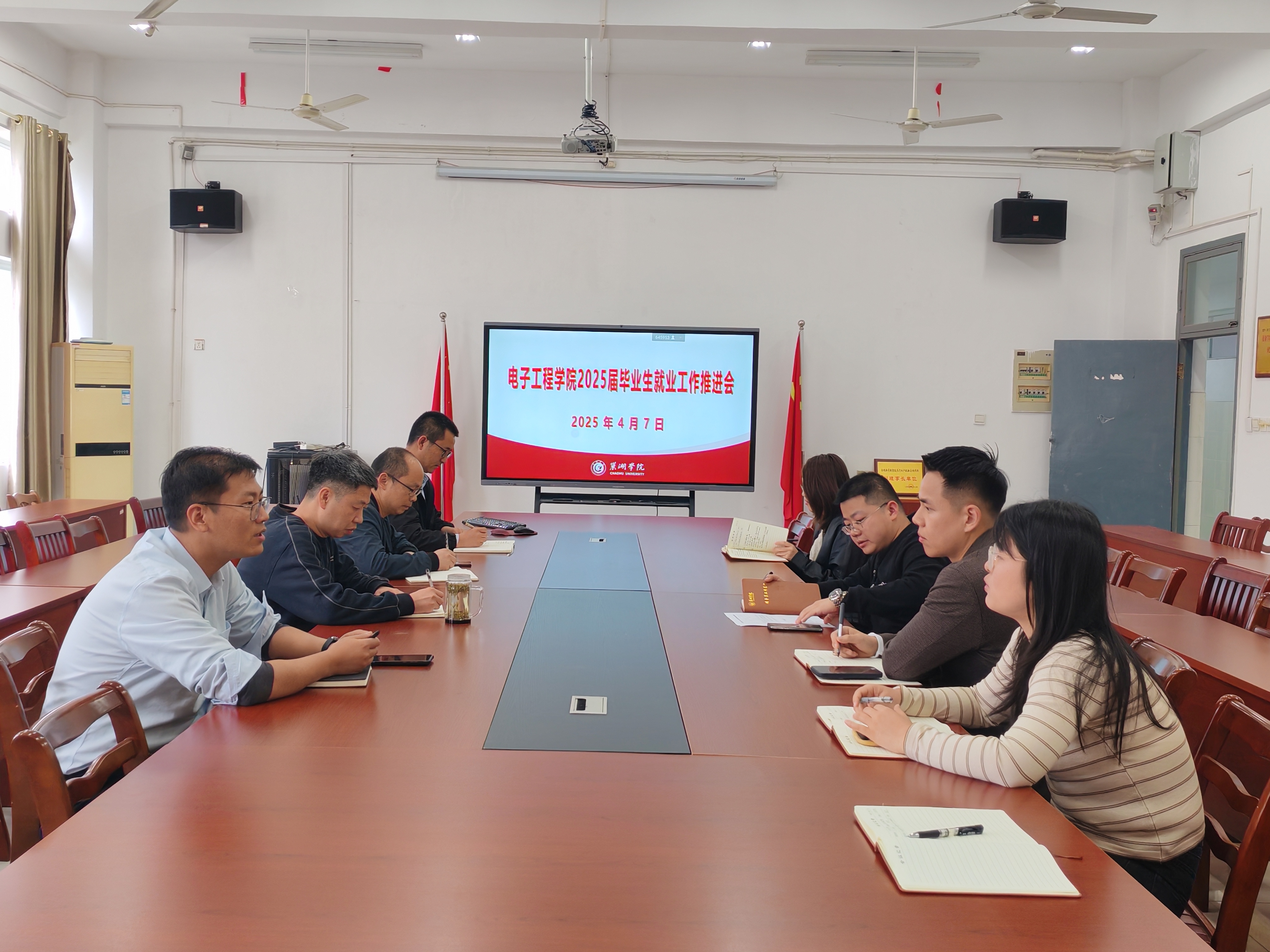 2025年4月7日下午,电子工程学院组织召开了2025届毕业生就业工作推进会,学院班子成员、毕业班辅导员、就业联络员参会,研究推进2025届毕业生就业工作。