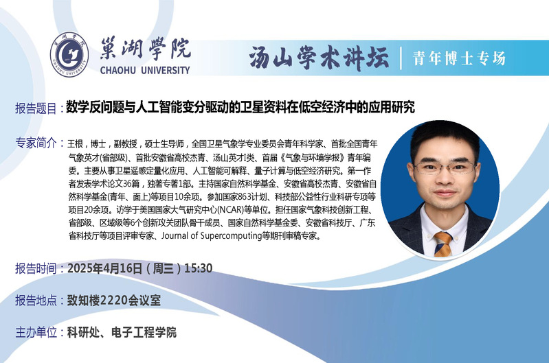 汤山学术讲坛青年博士专场:(4月16日:电子工程学院王根博士讲座)