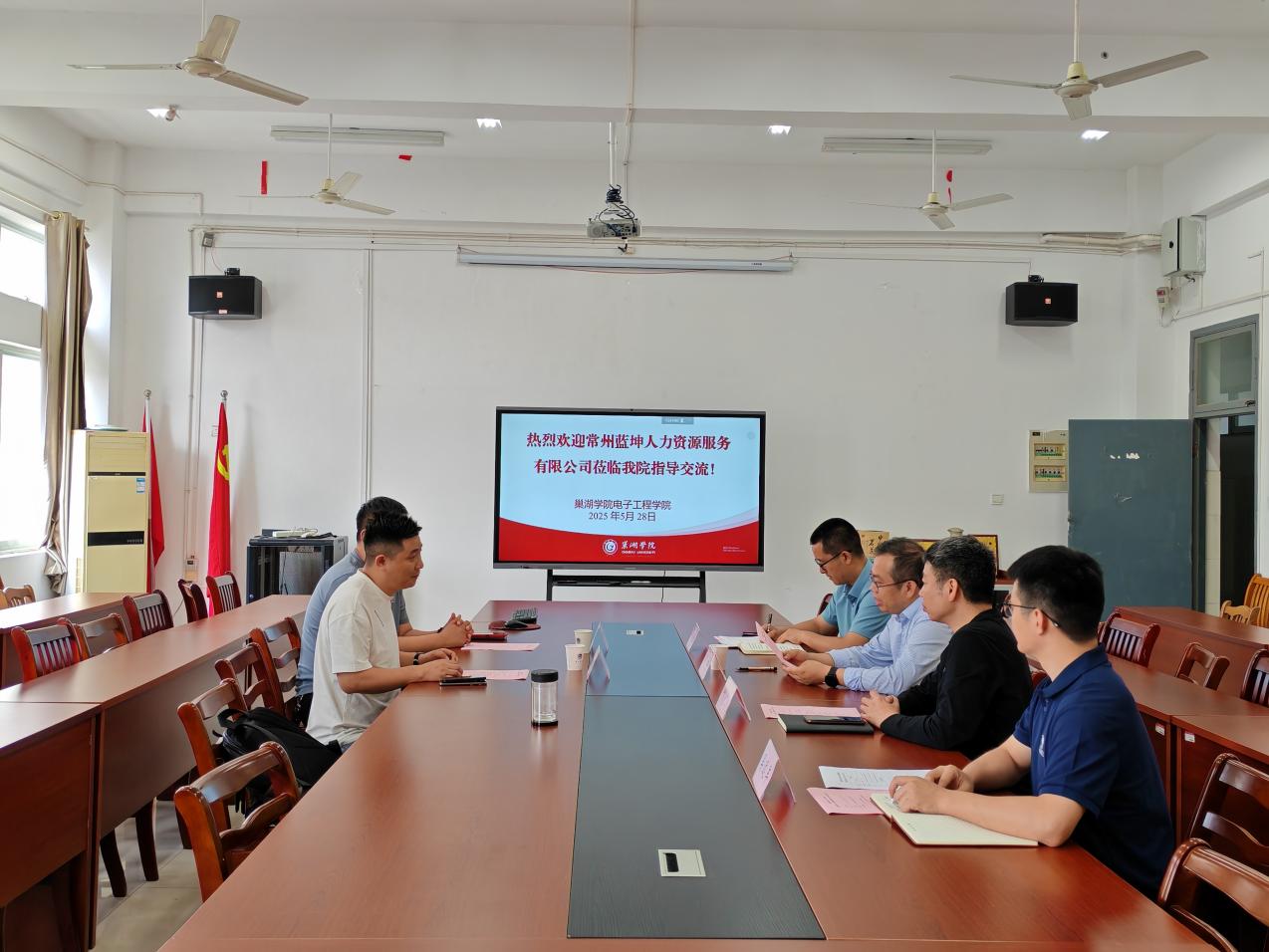 为进一步深化产教融合,2025年5月28日下午,电子工程学院举办常州蓝坤人力资源服务有限公司校企合作洽谈会。校党委委员、副校长周祥出席会议。