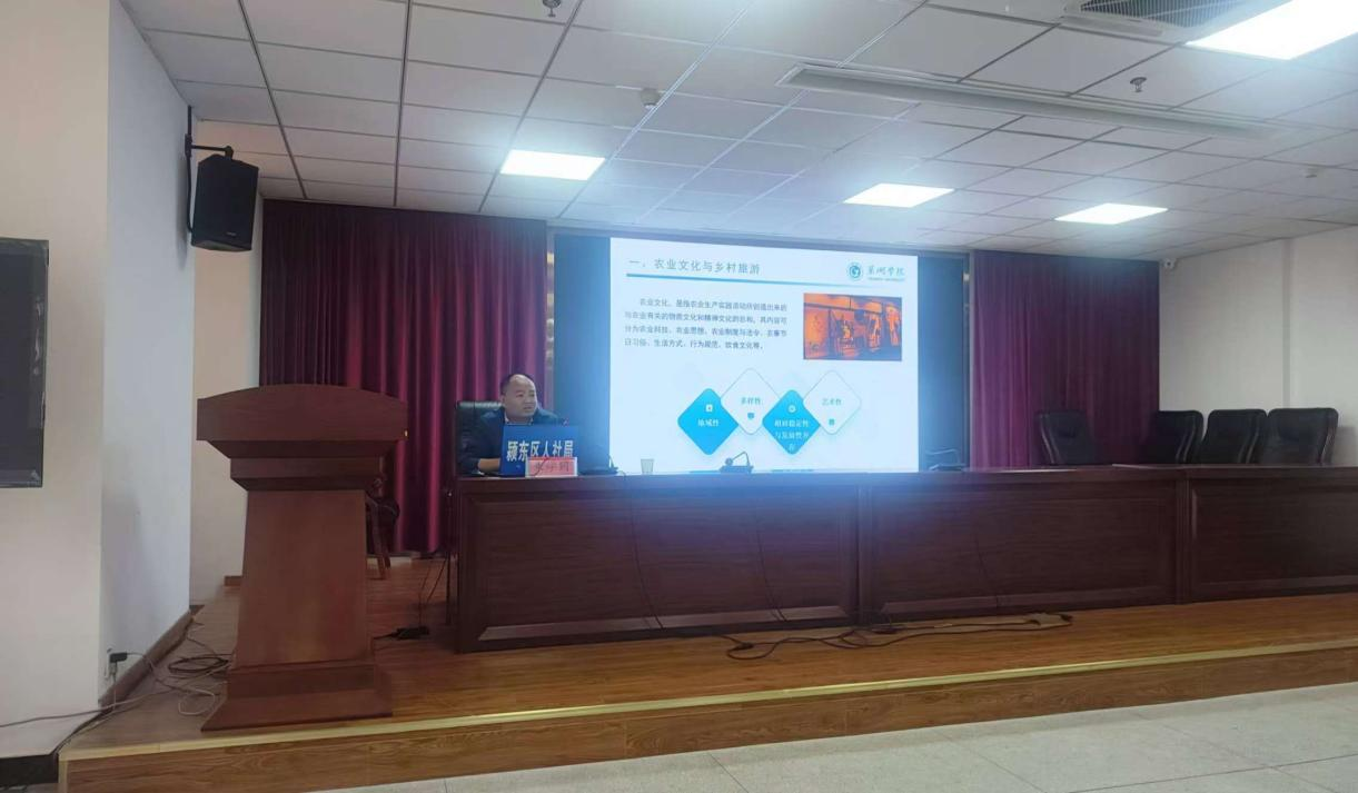 2024年10月12日下午,应阜阳市颍东区文化旅游体育局邀请,环巢湖研究中心研究员朱学同老师为阜阳市颍东区文化和旅游干部作乡村旅游产业发展专题培训。培训会由颍东区文化旅游体育局副局长梁静静主持,各乡镇、街道办事处分管文旅工作负责人,区文旅体局有关人员60余人参加培训会。
