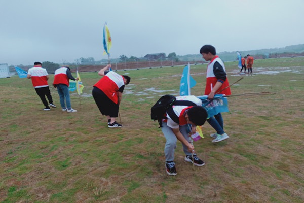 比赛当日早上7:30,志愿者们兵分两路前往参赛队员集合点及比赛场地。虽天气情况恶劣,但当参赛队员们到达比赛场地时,志愿者们早已迎着风雨等候在各个路口处。在将参赛队员们接到各自的比赛场地后,志愿者们便在比赛场地上忙碌了起来。当日风雨交加,比赛场地变得泥泞不堪,赛场道具也因风力过大被吹的东倒西歪。尽管如此,志愿者们还是坚守自己的职责,不断在风雨中扶起被吹到的道具以及维护赛场的秩序。整场赛事在志愿者们的助力下井然有序地的进行着。