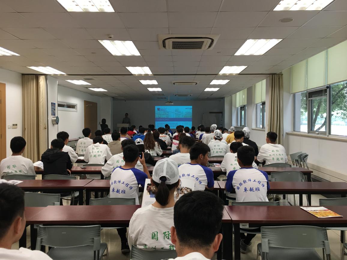 公司人力资源部经理向同学们介绍了NTT数据公司的概况,以及目前中国地区无锡总部和其它城市各个分部的具体职能。在沟通和交流的过程中,同学们更加深刻地了解到他们需要掌握的技能,进一步提高对自己的要求。在参观结束后,全体师生在公司前进行了集体合影以作留念。