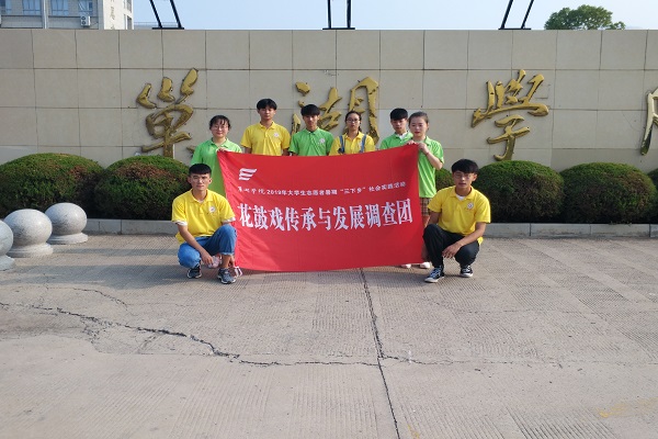 7月11日上午,“花鼓戏”传承与发展调研团在团总支书记刘小燕,组长李同健的指导带领下于慎思楼集合。在简短的出征仪式上,队员们举起了暑期“三下乡”社会实践的旗帜为本次活动拉开序幕。