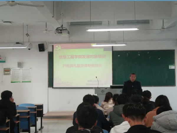 为了增强发展对象的思想政治教育,加强党的知识普及。信息工程学院于2019年12月6日12:30在慎思楼北101教室开展了信息工程学院发展对象培训开班典礼暨党课专题报告会。会议由党课班主任樊乐乐主持,信息工程学院党委书记陈士群,全体学生党员以及38名发展对象参加。