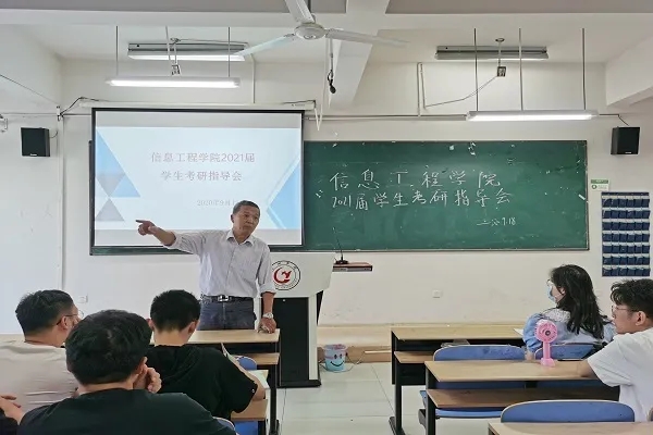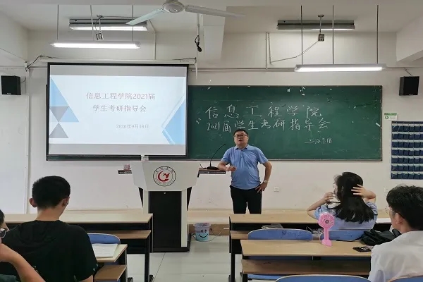为调动学生的考研积极性,挖掘自身潜能,认清形势,合理决策,9月18日下午3点,信息工程学院于慎思楼中201教室召开2021届学生考研指导会。信息工程学院党委书记陈士群、副院长吴其林参加指导会,江家宝老师和刘波、杜梦丽、曹骞、刘拥等老师应邀作为主讲嘉宾,本次会议由院就业联络员梁腾飞主持。