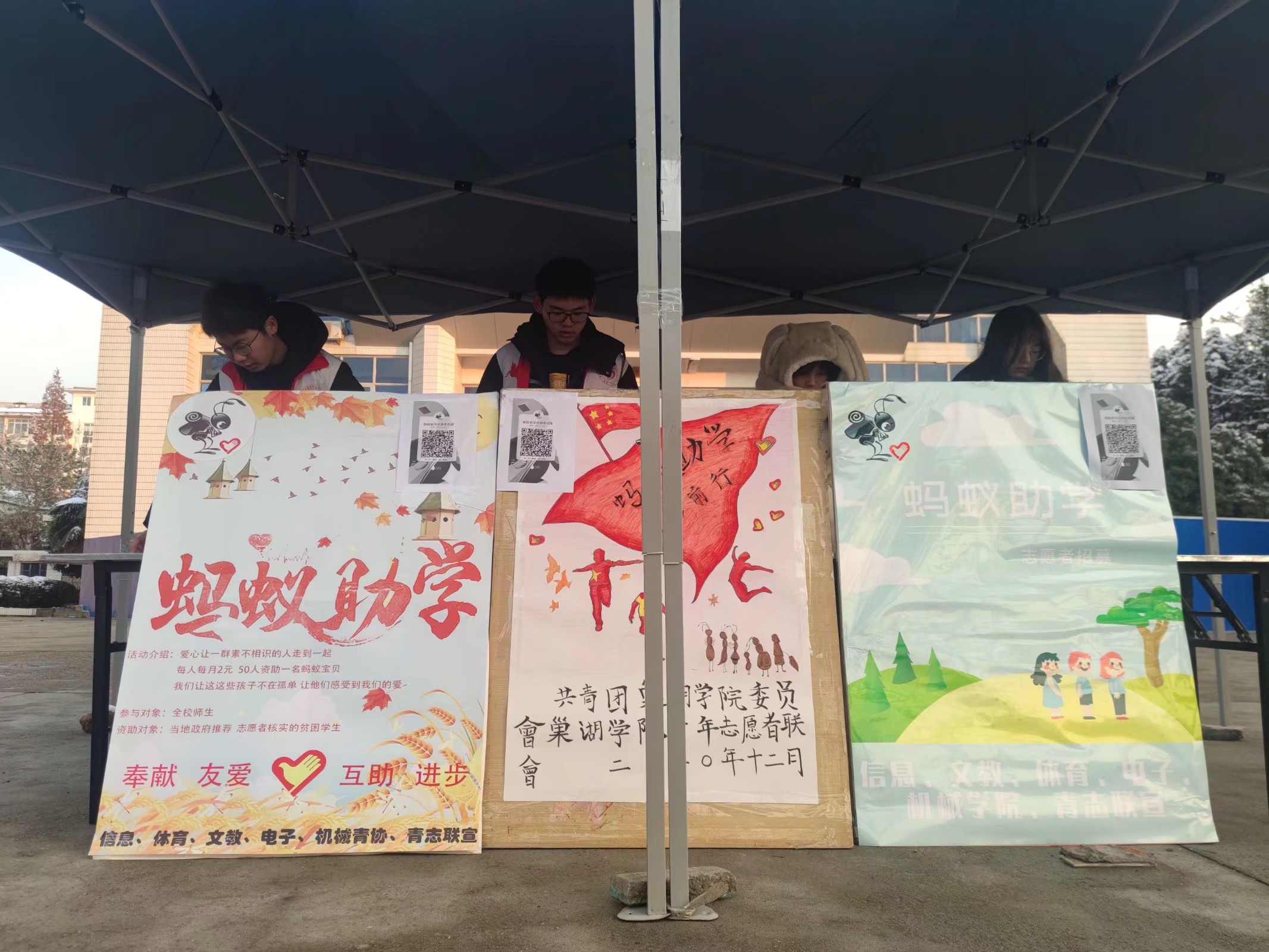 为更加全面地帮助蚂蚁宝贝,完善蚂蚁助学资助计划,12月14日-15日,信息工程学院青年志愿者协会携手校青志联、体育、文教、电子、机械学院青年志愿者协会开展为期两天的“蚂蚁助学”志愿者招募活动。