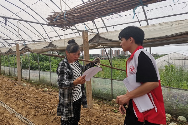 调研团队在安全抵达白山镇之后,首先实地走访了白山镇鸡鸣村村委会对相关负责人进行采访。在白山镇工作人员的带领下,团队成员通过实地走访农业大棚和发放问卷的形式向当地居民展开相关调研。