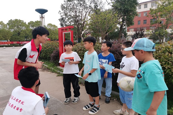 为加强白山镇学龄儿童“防溺水”意识团队成员走街串巷,通过PPT以及宣传彩页等结合真实案例向当地居民进行防溺水知识宣传,教育引导居民树立防溺水意识。团队成员通过精心准备的材料和切实的事例向孩子们讲述夏日防溺水的有效自救方法以及防溺水的重要性,小朋友们对团队绘声绘色所讲述的知识表现出浓厚的兴趣,同时也深刻掌握了宣传内容,家长们对此工作也予以十分的支持与鼓励。