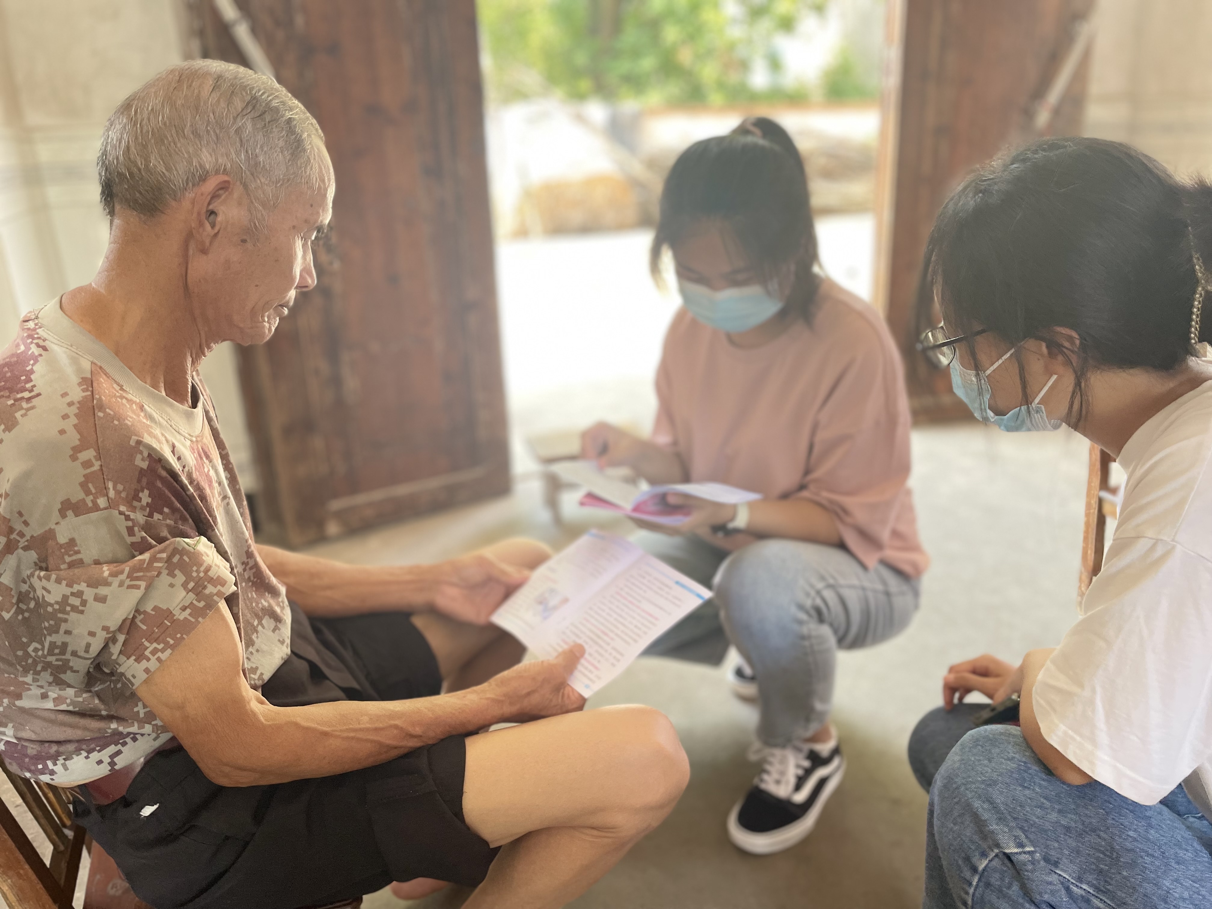 活动中,团队成员也向村中老人分发有关卫生知识的安全手册,并耐心为老人重点讲解有关饮食安全方面的知识。近期天气炎热,成员提醒老人要注意防暑、合理饮食、多吃清热解暑的食物。