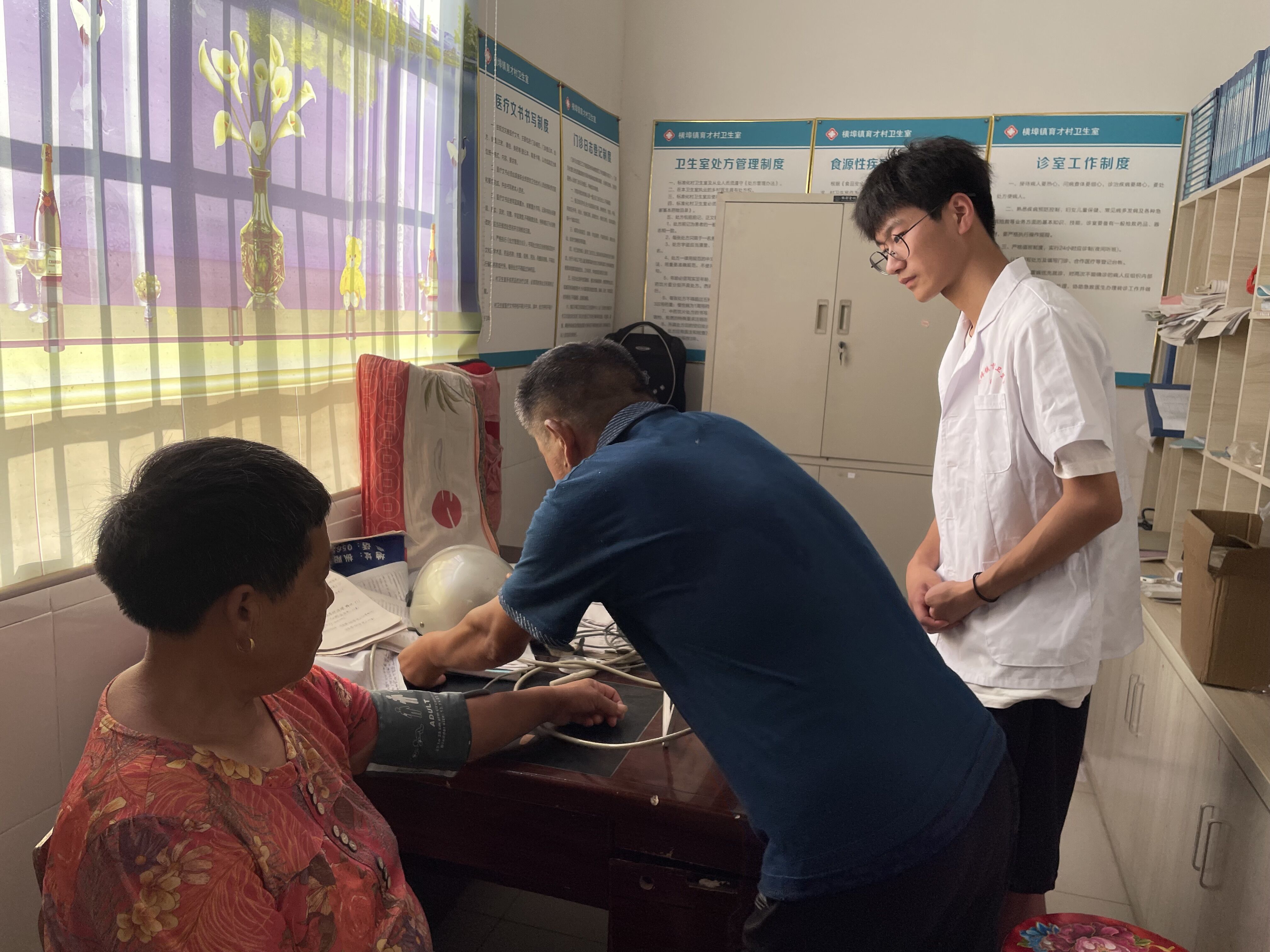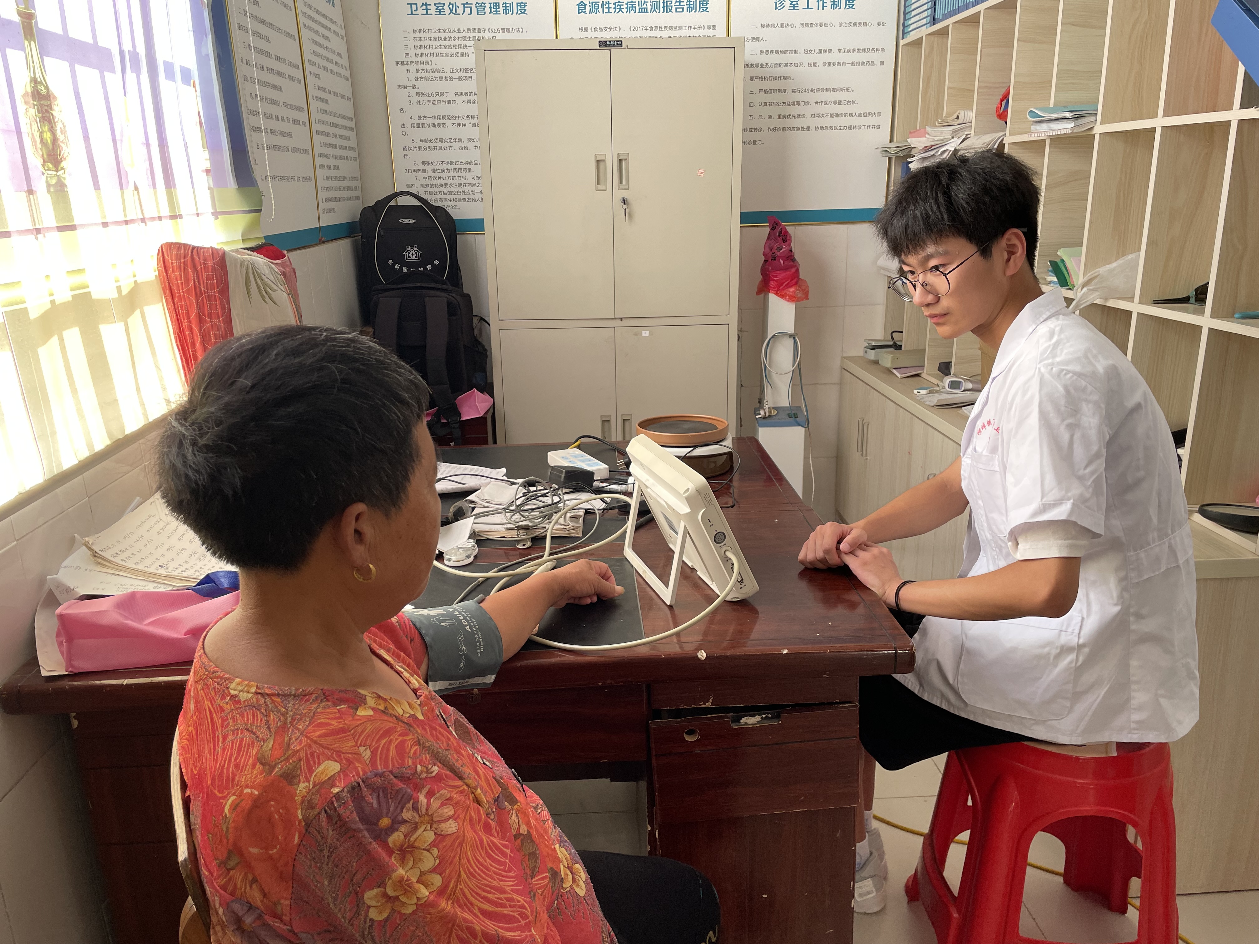 实践活动开展前,队长张庭玉向团队成员介绍本次活动的相关事宜,并和育才村当地卫生所进行沟通,共同商量活动的具体事宜。随后,团队成员在乡村医生的指导下在村内卫生所为村民测量血压。同时,团队成员对于一些血压偏高的老人,耐心为老人说明日常注意事项。