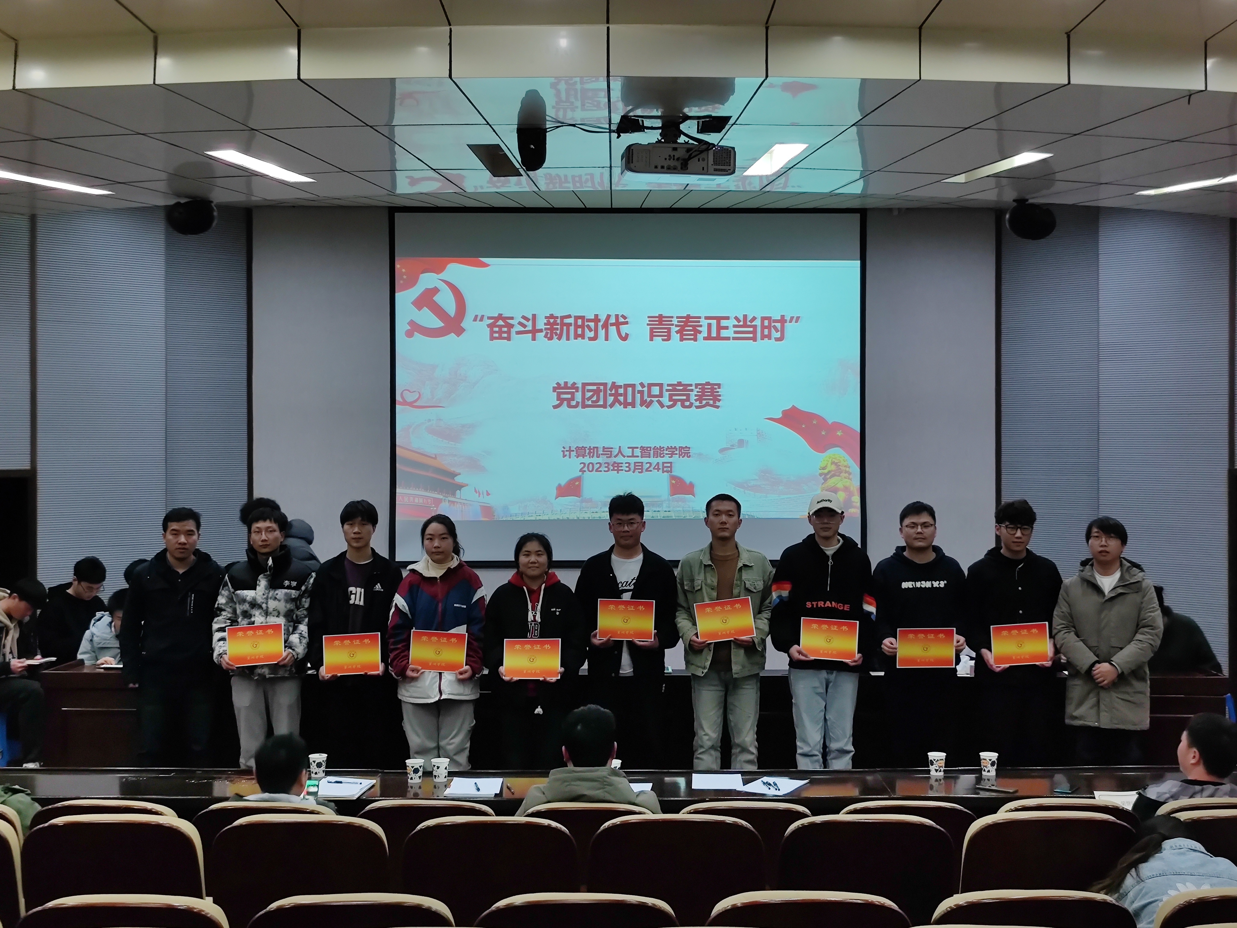 为全面贯彻落实党的二十大精神,丰富党员活动形式,激发基层组织活力,计算机与人工智能学院于3月24日中午在致知楼报告厅举办“奋斗新时代青春正当时”党团知识竞赛。