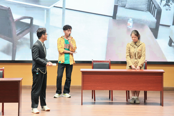 情景剧中,同学们针对常见的网络刷单、冒充电商客服、冒充公检法、网恋诈骗等诈骗手段,自编自导自演的情景剧搬上舞台,以生动活泼的方式给现场的同学们上了一堂别样的“安全教育课”。《赚钱新路子》《亦真亦假》《骗与不骗》《天降“陷”饼》《无所不用其“急”》五个节目从不同的诈骗类型展示了大学生常见的电信诈骗案例。同学们以诙谐幽默的方式、创意十足的剧情、贴近生活的台词和精彩生动的表演,让观众在笑声中,深刻认识电信网络诈骗的危害性。反诈防骗小知识,观众抢答环节,更是把现场氛围推向高潮。