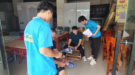 7月2日,团队成员在白山镇社区负责人的带领下,前往了白山镇社区。队员们提前准备了反诈宣传单,积极踊跃地向当地群众调研关于电信诈骗的了解情况,同时广泛普及反诈知识,旨在帮助老百姓们树立起反诈意识。