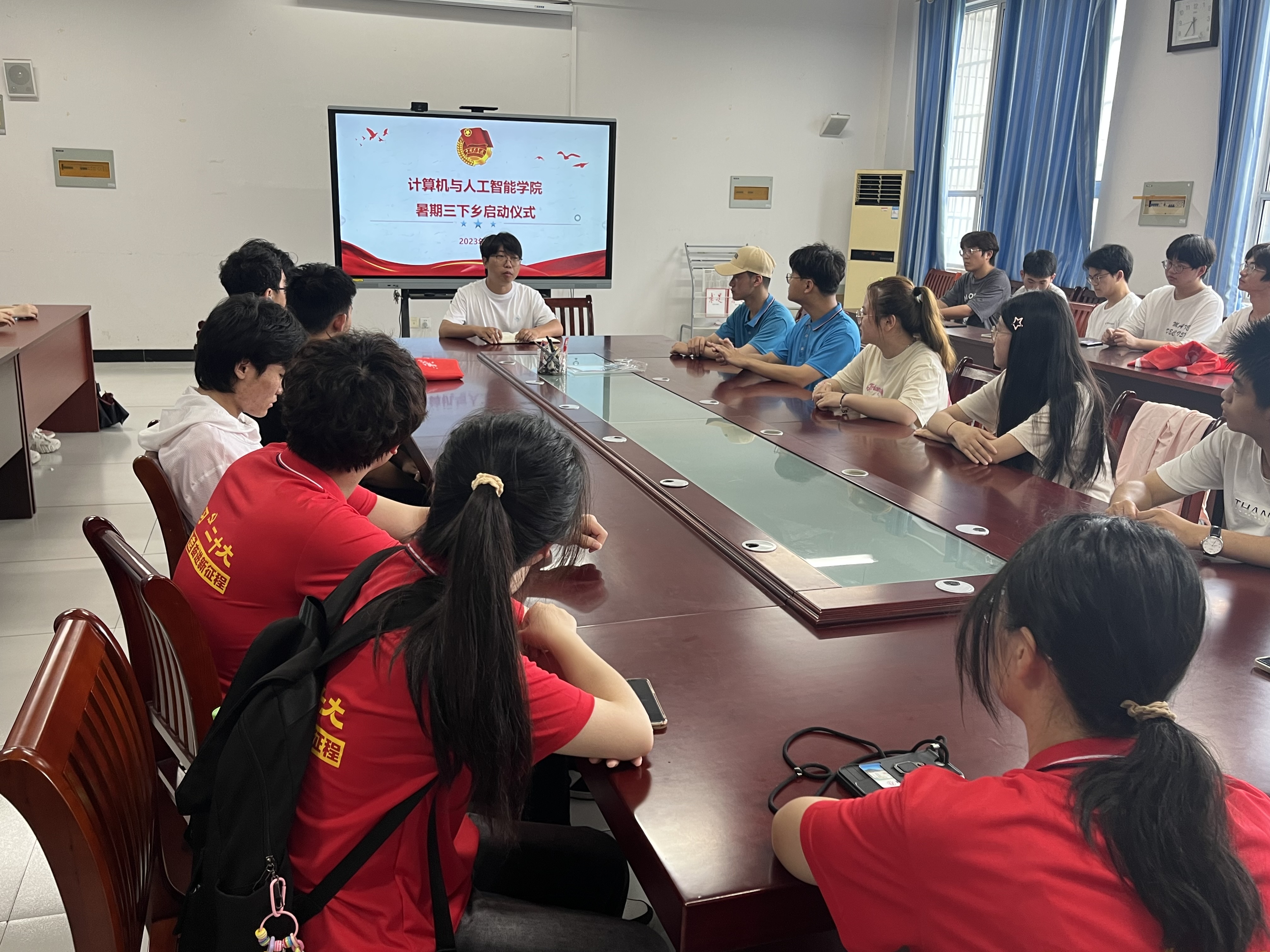 为深入学习宣传贯彻习近平新时代中国特色社会主义思想和党的二十大精神,认真落实团十九大部署,坚持在火热实践中培育有理想、敢担当、能吃苦、肯奋斗的新时代好青年,6月29日下午,计算机与人工智能学院2023年大学生志愿者暑期“三下乡”社会实践活动出征仪式在计算机学院会议室举行。本次会议由金而立主持,计算机与人工智能学院暑期三下乡各团队成员参会。