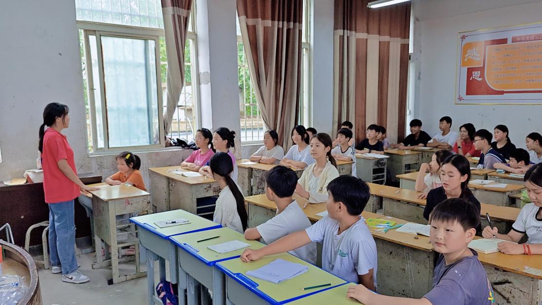 志愿团队第二站来到了店集镇,队员们探访了镇上的留守儿童,帮助孩子们解决学习难题。通过队员们细心的讲解以及生动的科普游戏,孩子们不仅得到了知识,更激发了对知识的渴望。