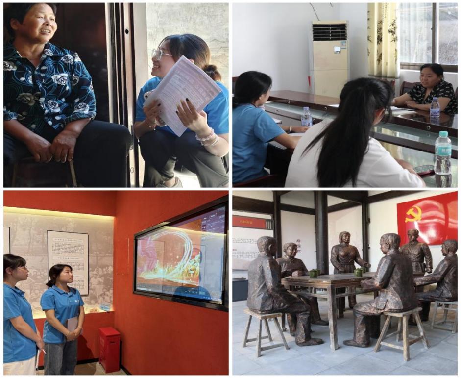 调研首日,学子们踏着晨光走入岩源村。与村委会书记对接,深入了解该村庄的红色底蕴。随后,实践团实地探访了当地的红色基地,每一处景致、每一个人物身影浸透着革命历史的温度。“打不死的刘奎”、反映游击队艰苦生活的12幅简笔画、“还债运动”等等以及泛黄的史料、静默陈列的旧物,共同编织出烽火岁月的壮烈经纬,彰显“星火岩源,革命热土”艰辛岁月。深入村巷,认真倾听村民们对红色文化的了解度以及对红色基地建设的想法。老人们的讲述带着乡音的朴实与岁月的沧桑,那些记忆深处的红色故事——村民冒险送情报、妇女为战士缝补衣物等,被他们娓娓道来。
