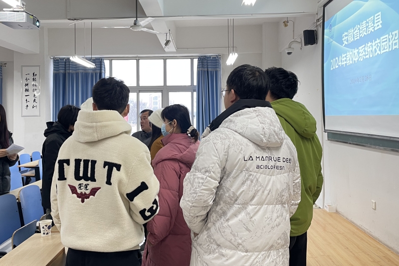 工作人员依次介绍绩溪县情和教育事业发展情况,重点对本次招聘范围、招聘对象、报考条件和招聘岗位进行了说明和介绍,针对同学们关心的报考要求、专业测试等问题进行现场答疑和充分交流。