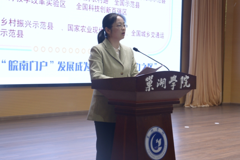 邓辉林围绕芜湖市繁昌区经济社会发展情况进行了现场推介。她与在场师生分享了繁昌“繁星璀璨”的历史底蕴、“繁花似锦”的发展面貌,以及“繁荣昌盛”的就业创业环境,热情邀请巢院学子走进繁昌、选择繁昌、留在繁昌。