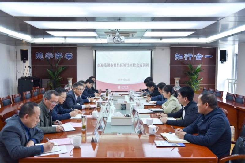 周祥简要介绍了学校办学历史、学科专业和人才培养等基本情况,对繁昌区委、区政府此行表示欢迎和感谢,希望以此为契机,深化交流合作,携手谱写校地高质量合作发展新篇章。