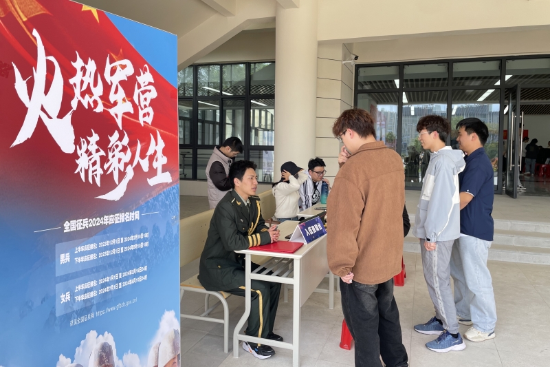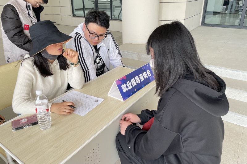 征兵咨询台和就业咨询台,就业指导人员为前来咨询学生提供简历义诊、求职指导、征兵政策宣传等服务,用心用情为毕业生求职就业、应征入伍提供切实帮助和指导。