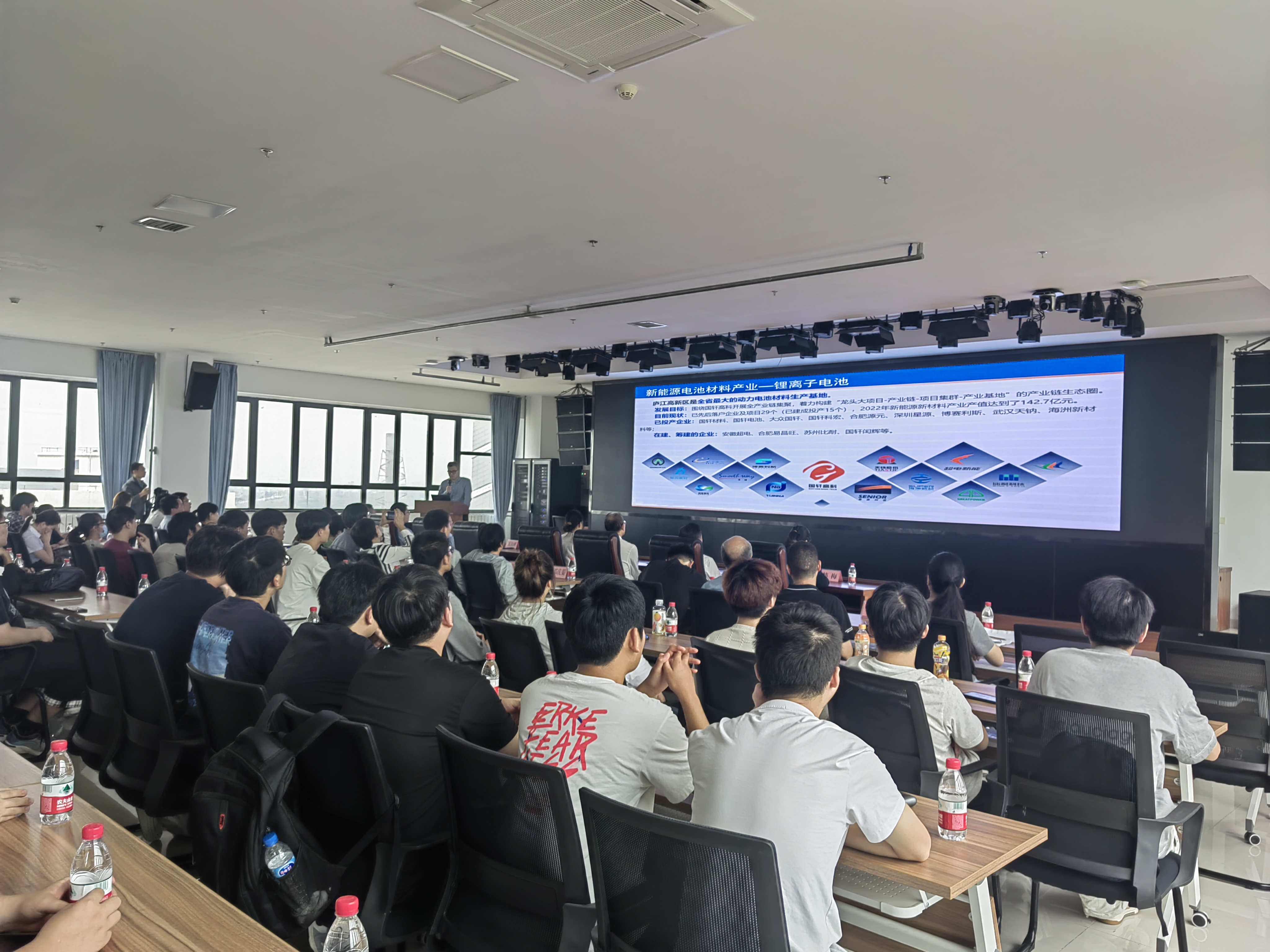 实地参观后,师生来到园区参加专场对接会,大家集体观看庐江县主题宣传片。庐江高新区、化工园相关负责同志就园区产业发展定位、企业发展现状、人才招引需求及相关配套服务等做了推介。合肥市赛纬电子材料有限公司、合肥国轩电池材料有限公司从公司发展历程、发展前景、人才培养和岗位招才需求、配套环境等作了宣讲推介。