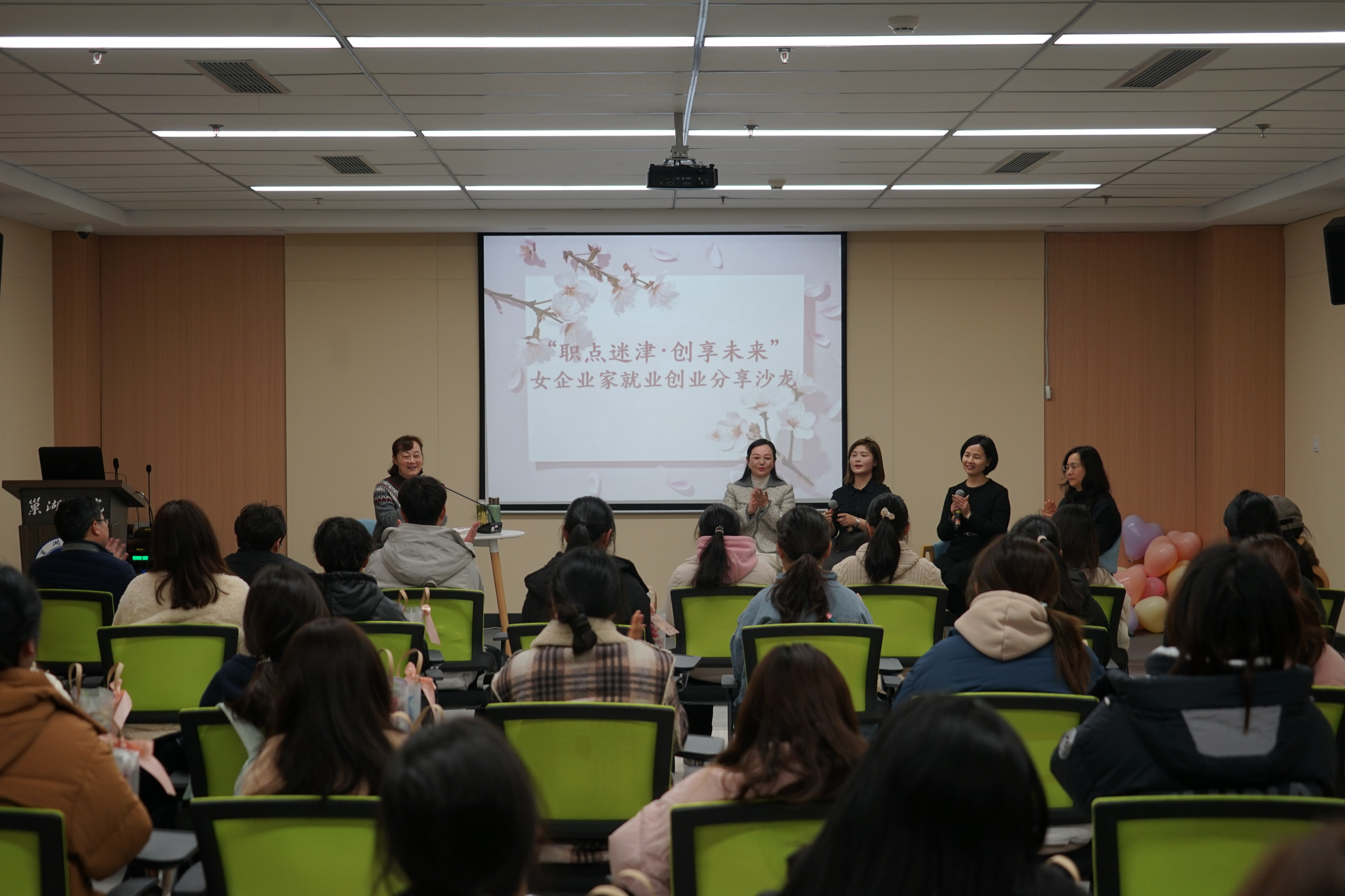 活动气氛热烈而温馨。四位女企业家真情分享了自己的创业历程、职场经验和人生感悟。创业成长路上的每一个故事都包含着风险与挑战,每一段经历都凝结着汗水与智慧,这些真实而生动的故事,深深打动了在场的女大学生们,激发了她们对未来职业发展的信心和动力。